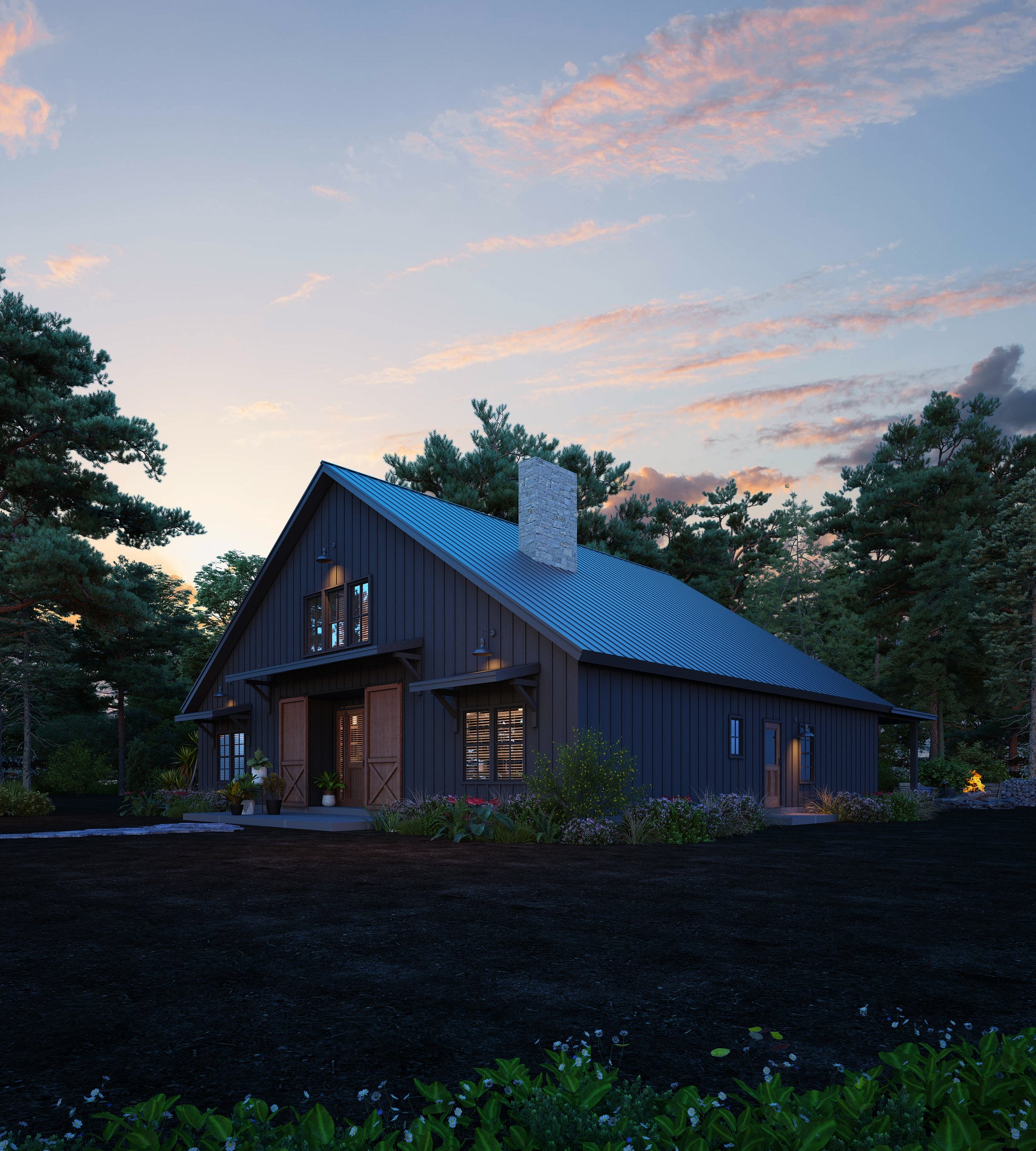 Black Modern Rustic Barndominium • 3 Bedroom