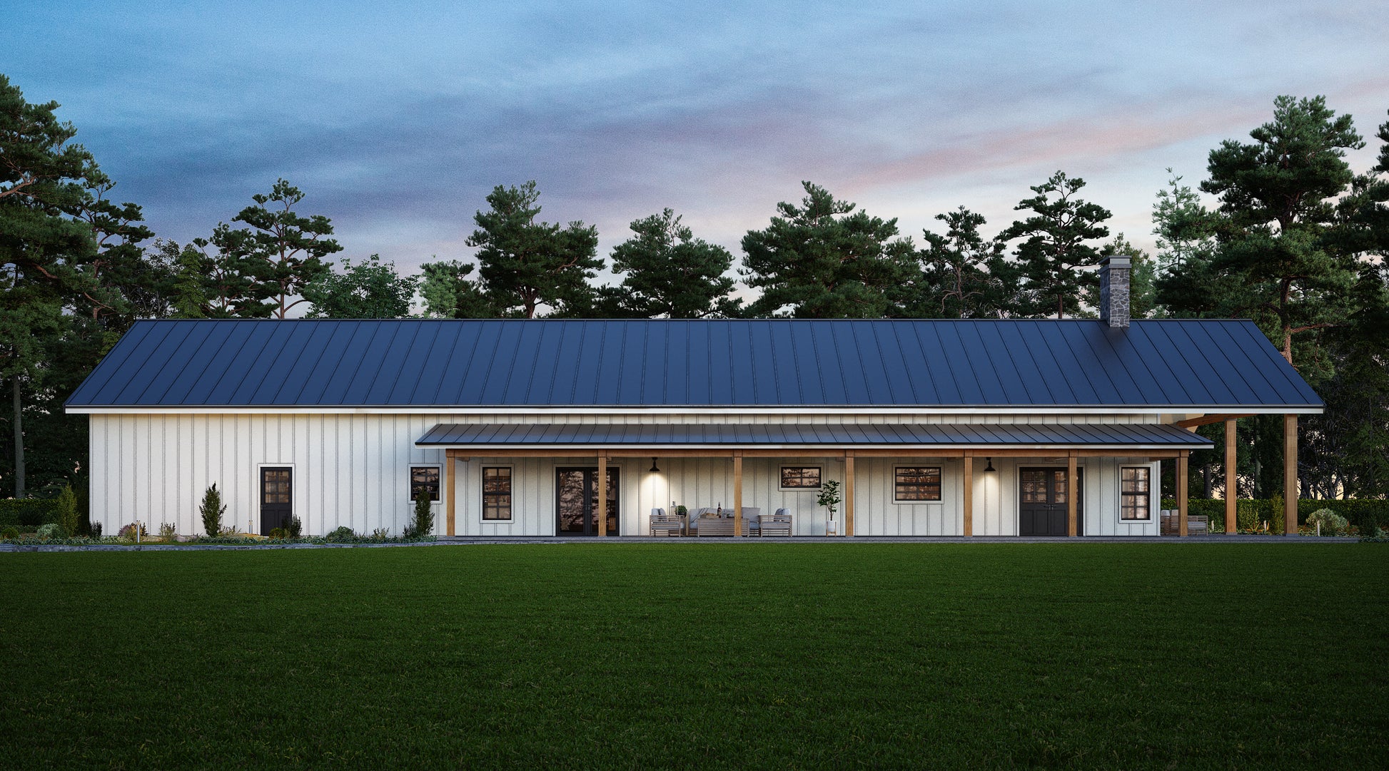 This version of the BM2664 plan adds a charming lofty porch and an outdoor fireplace, creating an inviting space for entertaining or relaxing year-round.