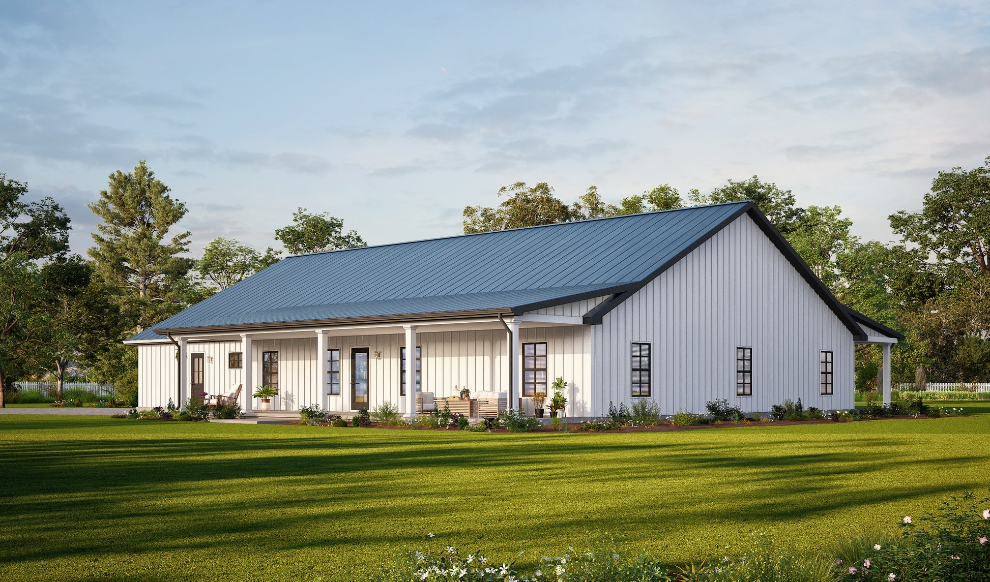 With five bedrooms, this barndominium provides ample space for family, guests, or even a home office setup. Like all our plans, it can be built using a metal building kit, post-frame kit, or traditional wood-frame kit—offering flexibility and a cost advantage in any market.