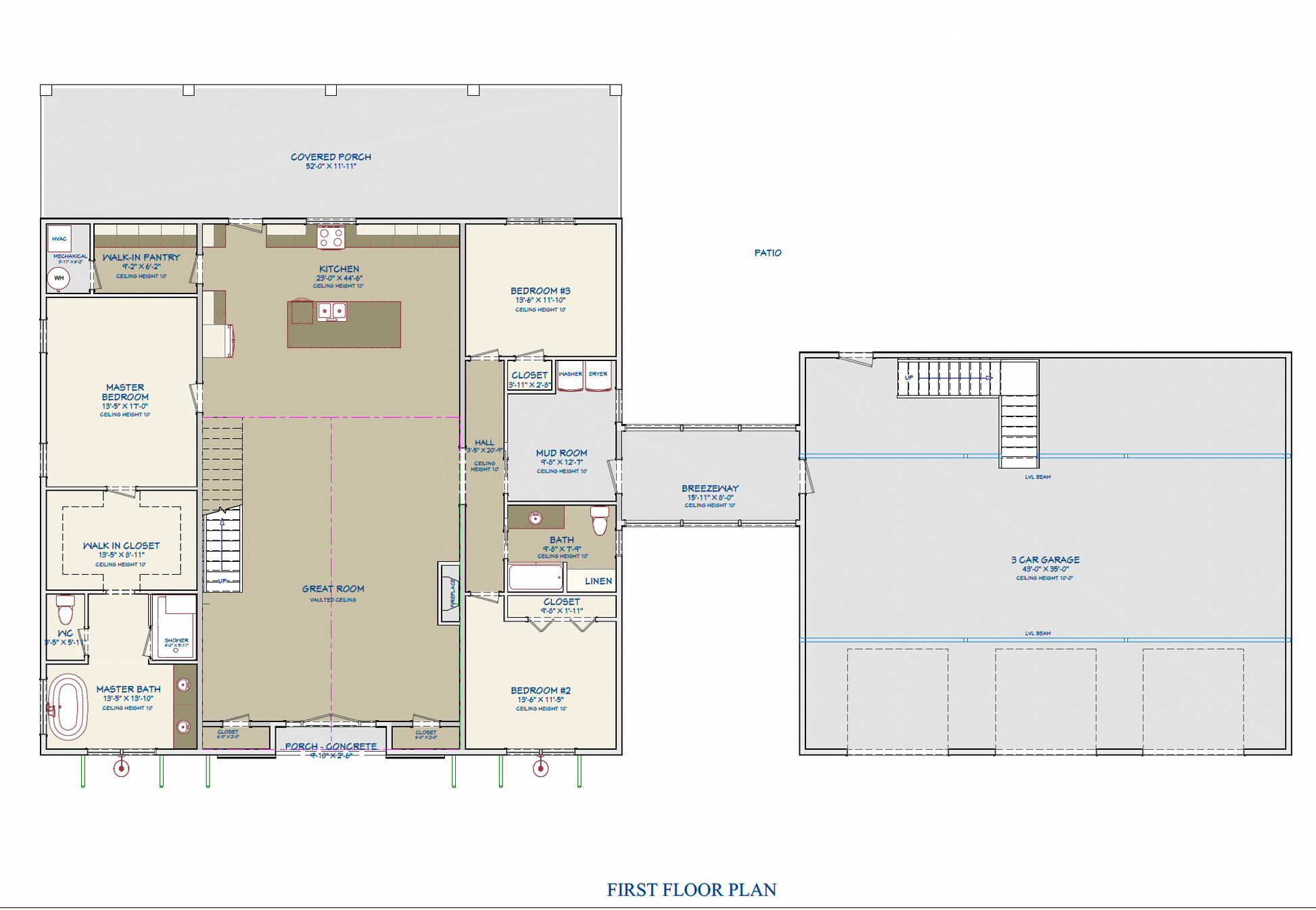 A spacious mudroom connects the main living area to a full glass breezeway, leading to an oversized 3-car garage. Above the garage, you’ll find an additional 781 sq. ft. of bonus space with a bathroom and bunkhouse—offering the flexibility for a guest suite, game room, or home office.
