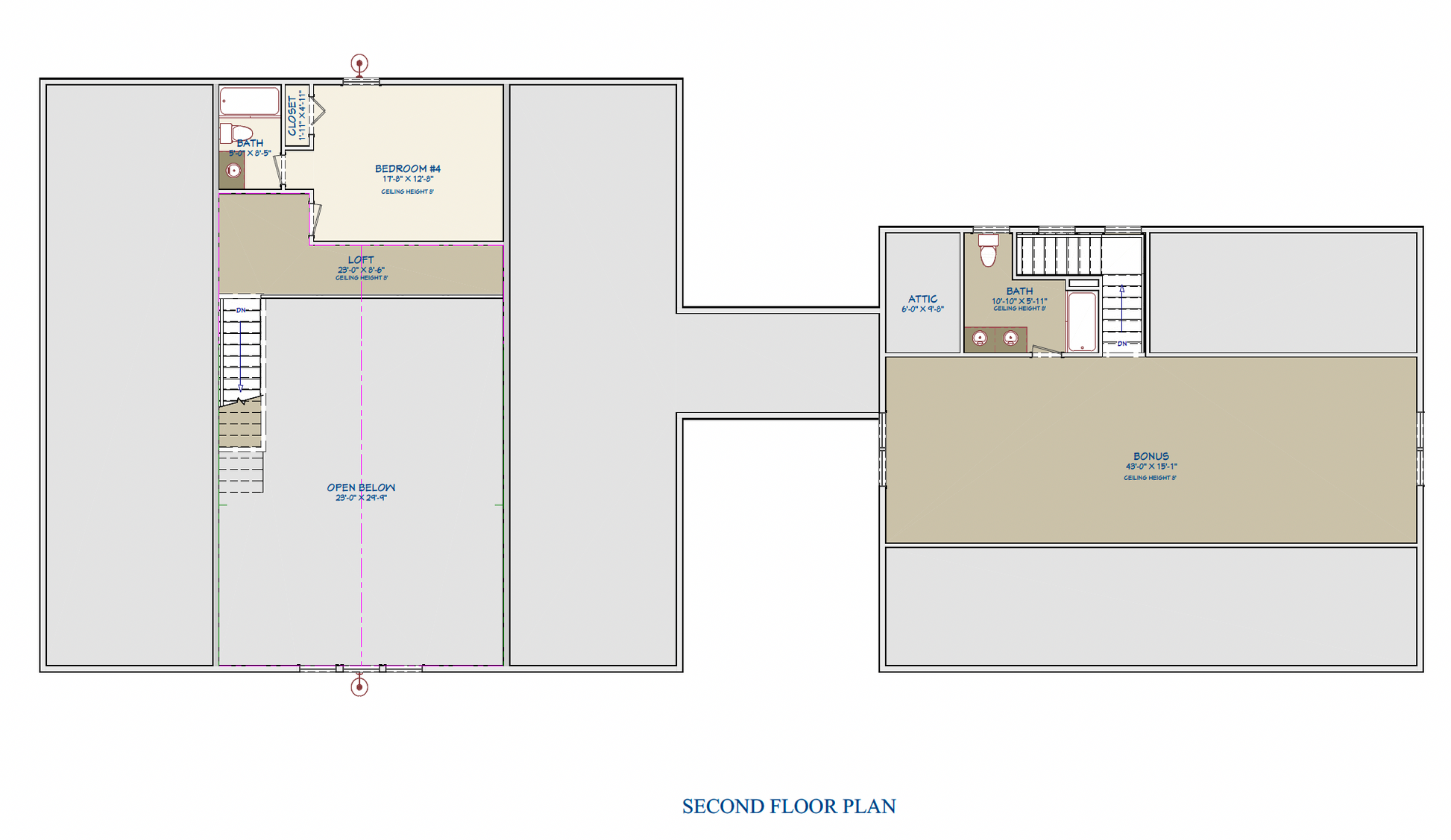 Any stock plan can be modified. This option allows for changes to the floor plan only. A modification package includes everything in the Stock Plan Package plus your requested changes. Changes that affect the foundation, roofline, window placement, or exterior elevations will require a redesign or custom quote.