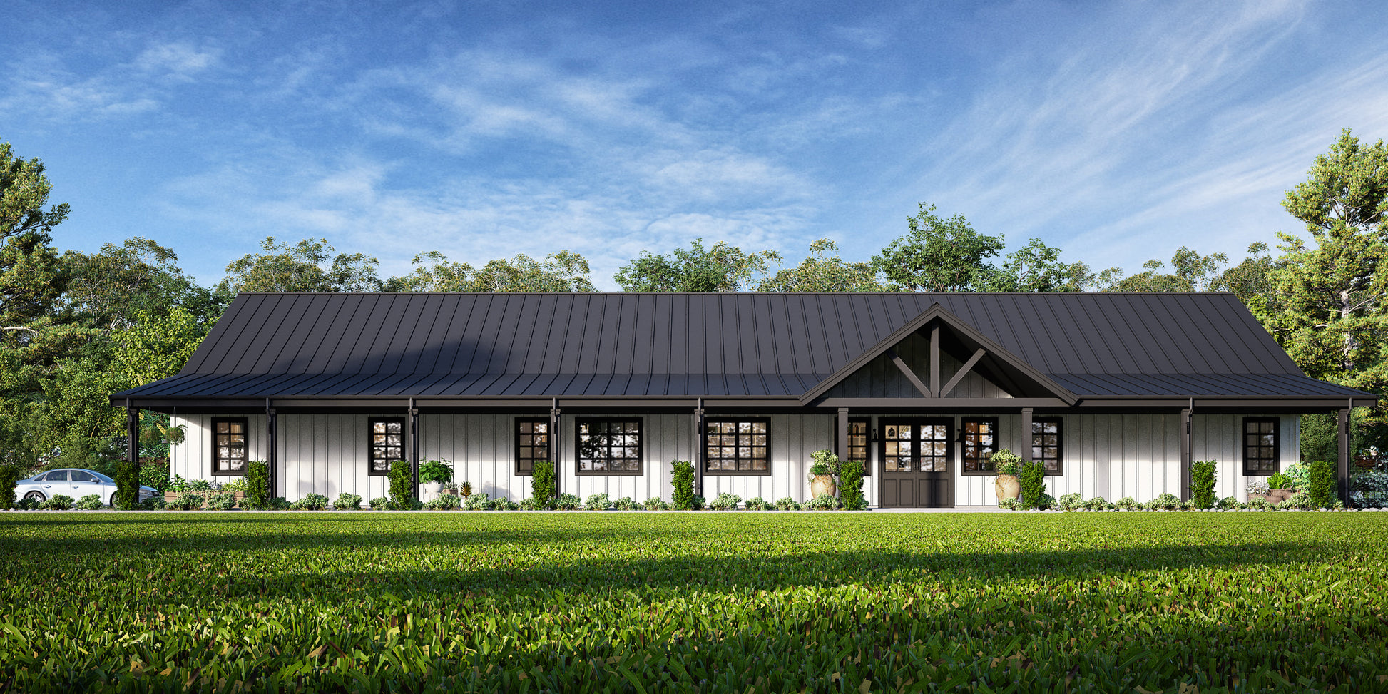 A spacious family barndominium with a private master suite, four bedrooms and two Jack-N-Jill bathrooms. This simple yet functional barndo is perfect for a larger or growing family looking for plenty of space. The flexibility of this barndominium is that it can be built using stick-built, steel or pole barn methods. A 5 car garage makes this a perfect option for a shop house.