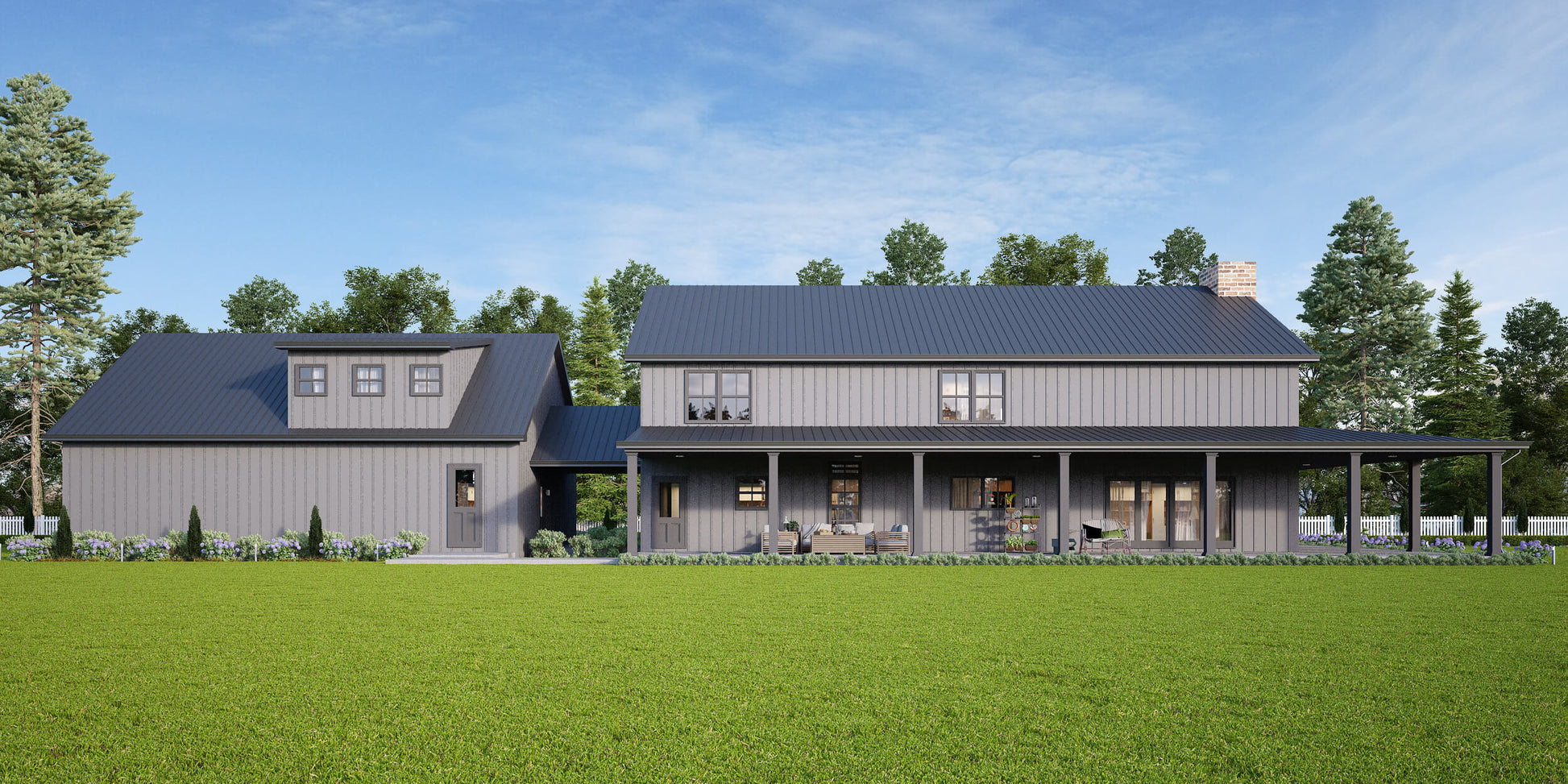 This impressive 3,970 sq. ft. barndominium is designed to stand out in any setting—combining timeless farmhouse charm with spacious modern living. The exterior features an expansive wraparound porch, perfect for relaxing, entertaining, or taking in the views from every angle.