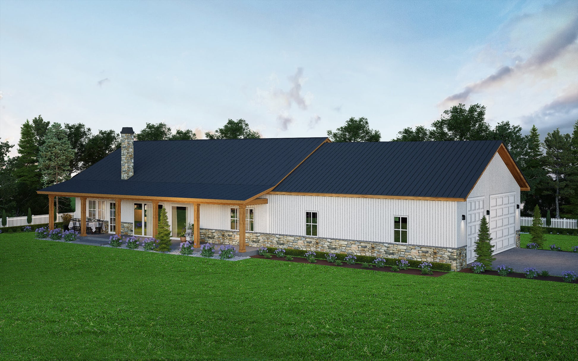This barndominium can be constructed using a metal building kit, post-frame kit, or conventional wood framing—giving you flexibility and cost advantages in any market.