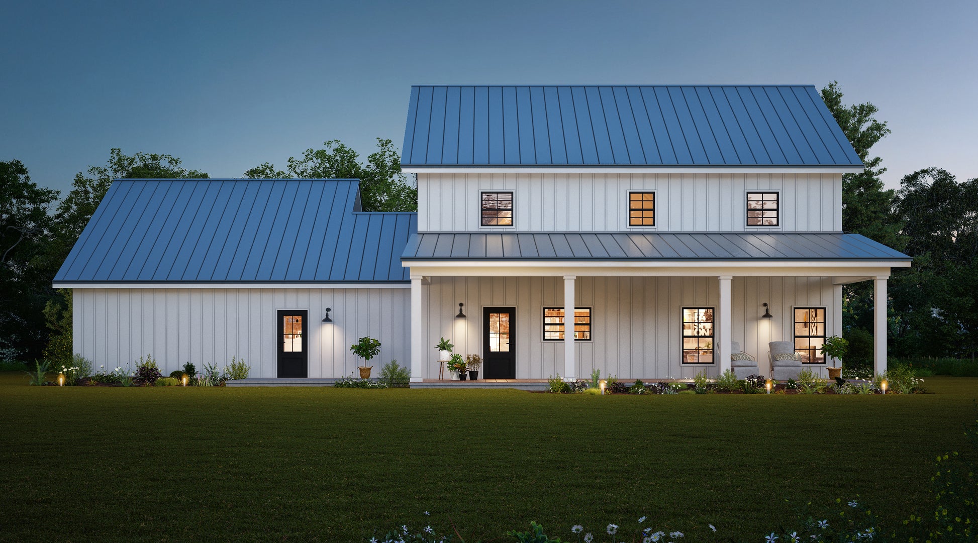 This versatile farmhouse plan can be built using a steel building kit or traditional wood framing, giving you cost-saving flexibility in any market. Spacious, functional, and full of warmth—this design is perfect for modern family living.